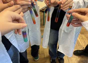 Eksperymenty chemiczne często mają charakter spektakularny, a ich wyniki prezentowane są w czerwcu podczas Szkolnego Festiwalu Nauki.