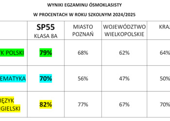 Świetne wyniki egzaminu w SP 55