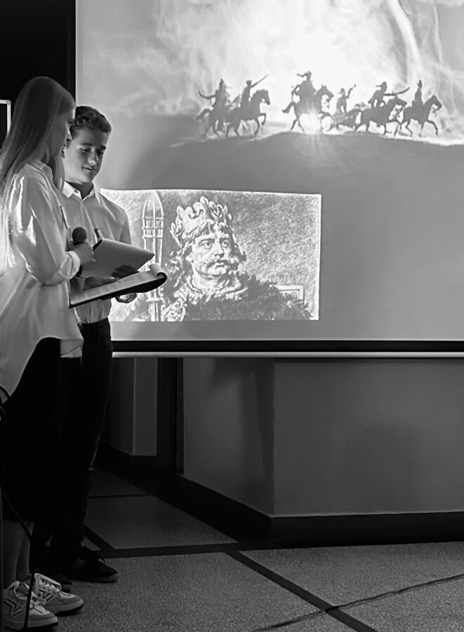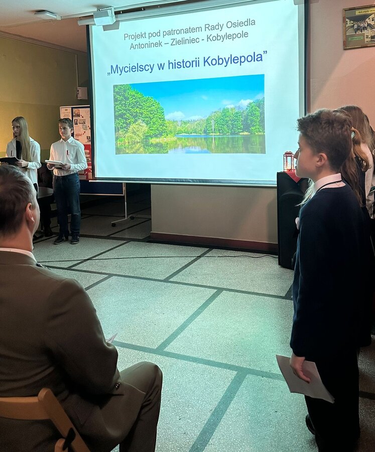 W dniu 20 listopada w naszej szkole odbyła się uroczysta wieczornica patriotyczna z okazji Narodowego Święta Niepodległości połączona z podsumowaniem projektu „Mycielscy w historii Kobylepola”. Projekt był realizowany pod patronatem Rady Osiedla Antoninek -Zieliniec- Kobylepole. Wydarzenie zostało przygotowane przez społeczność szkolną i skierowane do mieszkańców naszego osiedla, aby wspólnie uczcić 106. rocznicę odzyskania przez Polskę niepodległości.