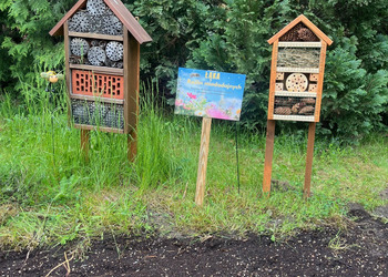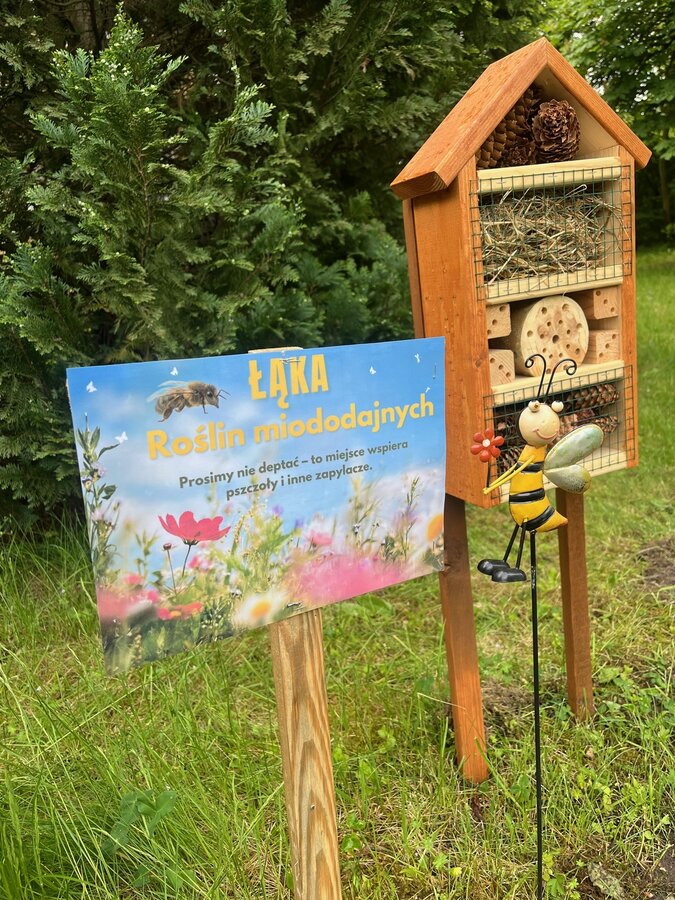 Zakupiliśmy i ustawiliśmy domek dla owadów, który stanie się schronieniem dla dzikich zapylaczy.