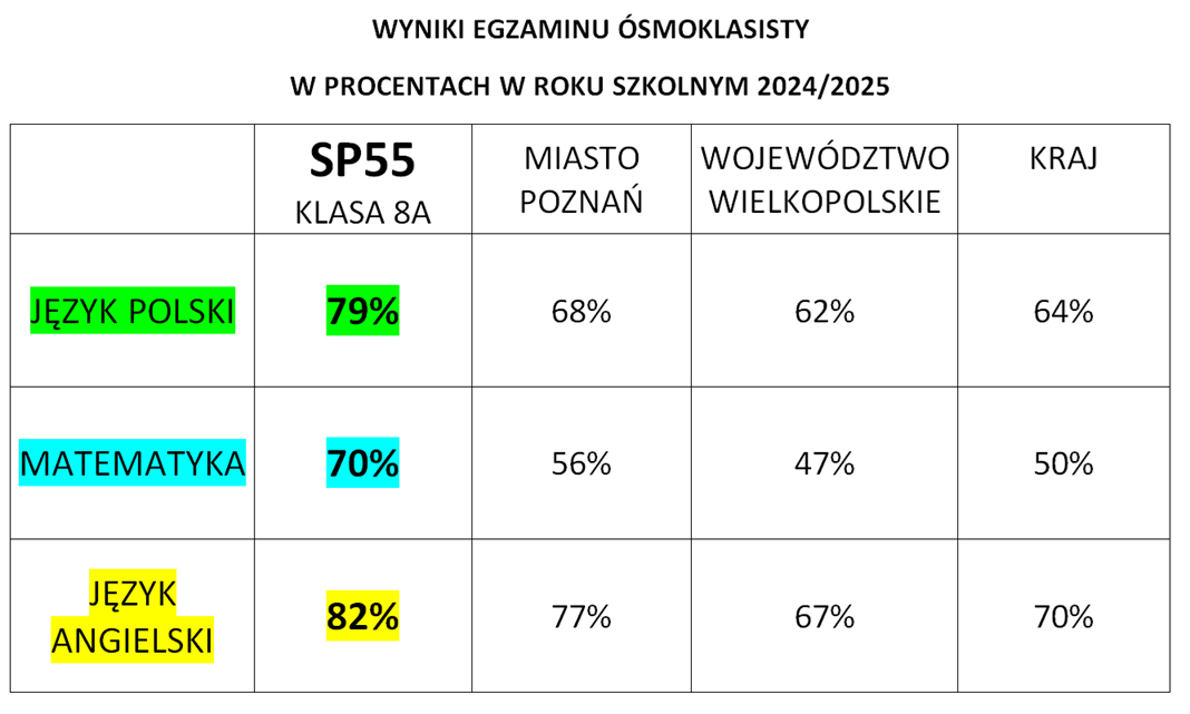 Świetne wyniki egzaminu w SP 55
