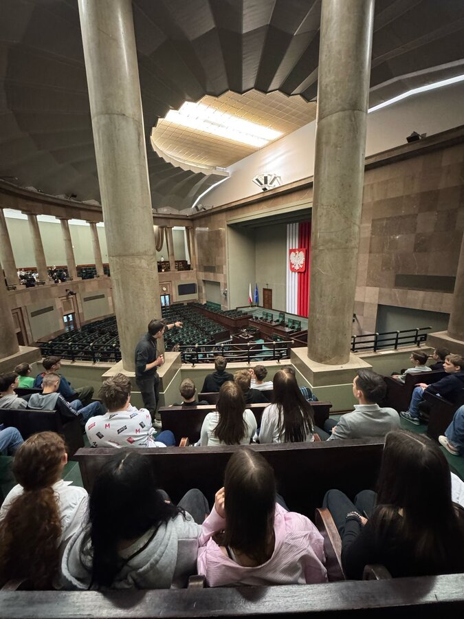 Dzięki uprzejmości Pana senatora Waldy Dzikowskiego, uczniowie klasy 8 mieli niezwykłą okazję zwiedzić Sejm i Senat – serce polskiej demokracji. Była to dla nas niezapomniana lekcja obywatelskości, podczas której mogliśmy z bliska przyjrzeć się pracy parlamentarzystów oraz poznać kulisy funkcjonowania najważniejszych instytucji państwowych.